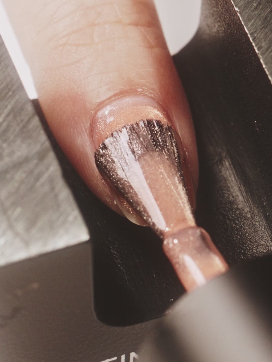 ポリッシュを軽くのせると、メタリックコーラルローズに。マグネットを当てると、ゴールドパウダーが際立つ、華やかなマグネットネイルに仕上がります。